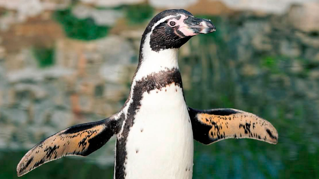 Este icónico habitante del Pacífico sur mide entre 56 y 70 cm, pesa hasta 5 kg y se distingue por su franja negra en forma de herradura en el pecho, mancha rosada en la base del pico y anillo ocular blanco. Nada hasta 40 km/h, bucea a profundidades de 60 metros en busca de anchoas y sardinas, y vive en colonias ruidosas sobre acantilados rocosos donde excava guareras para anidar. Se reproducen una vez al año, pone dos huevos en promedio y ambos padres incuban durante 40 días, turnándose para alimentarse en el mar. Los polluelos permanecen en la guarera hasta tres meses, protegidos por el cuidado biparental hasta emplumar. #PingüinoHumboldt #EspecieEndémica