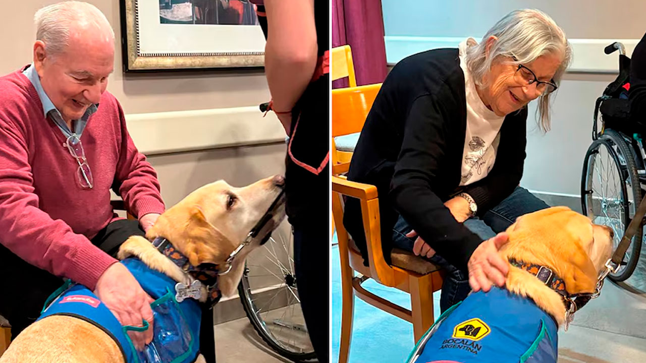 Perros terapéuticos revolucionan el bienestar de adultos mayores en residencias geriátricas